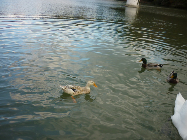 中に一羽、白っぽいカモがいて、この子だけ、白鳥に突かれて、いじめられてました。白鳥め。